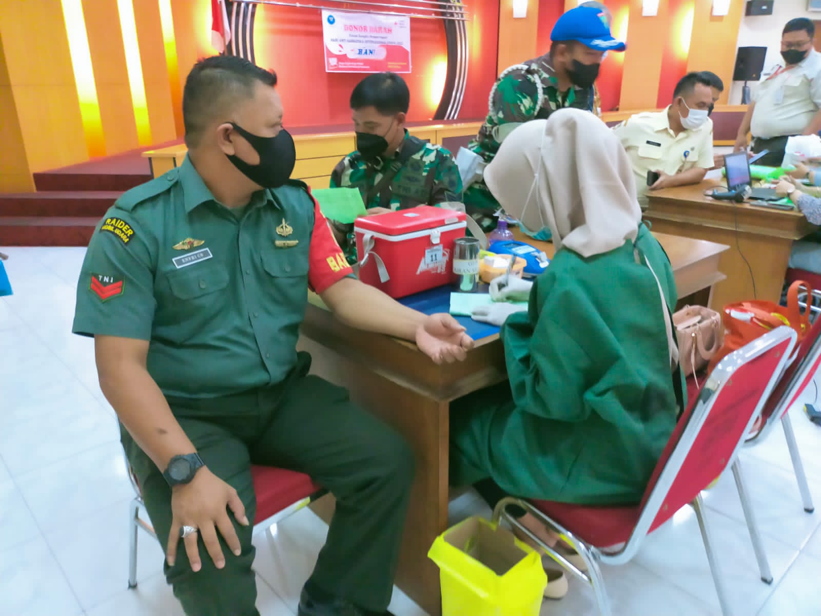 REAKSIMEDIA.COM | Surakarta – Dalam rangka memperingati hari Anti Narkotika internasional (HANI) Tahun 2022, segenap Anggota Kodim 0735/Surakarta mengikuti kegiatan bakti sosial Donor Darah Bertempat di Gedung Tawang Praja Lantai 5 Komplek Balaikota Surakarta, Rabu (06/07/2022) pukul 08.00 Wib sd selesai.