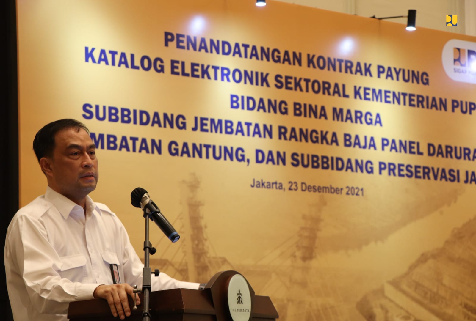 Direktur Jenderal Bina Konstruksi Kementerian PUPR Yudha Mediawan mengatakan, penandatanganan kontrak payung e-katalog sektoral kali ini dikhususkan pada Subbidang Jembatan Rangka Baja Panrl Darurat, Jembatan Gantung, dan Preservasi Jalan.
