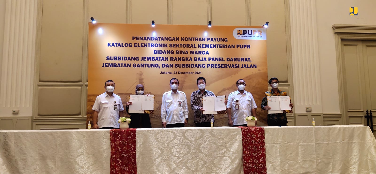 REAKSIMEDIA.COM | Jakarta – Kementerian Pekerjaan Umum dan Perumahan Rakyat (PUPR) terus meningkatkan penggunaan Katalog Elektronik atau e-Katalog dalam pengadaan barang dan jasa (PBJ) untuk mendukung PBJ Pemerintah yang terbuka, efisien, cepat dan mudah. Pada hari Kamis (23/12/2021), Kementerian PUPR kembali melakukan penandatanganan Kontrak Payung Katalog Elektronik (e-katalog) Sektoral Bidang Bina Marga bersama 28 penyedia produk.