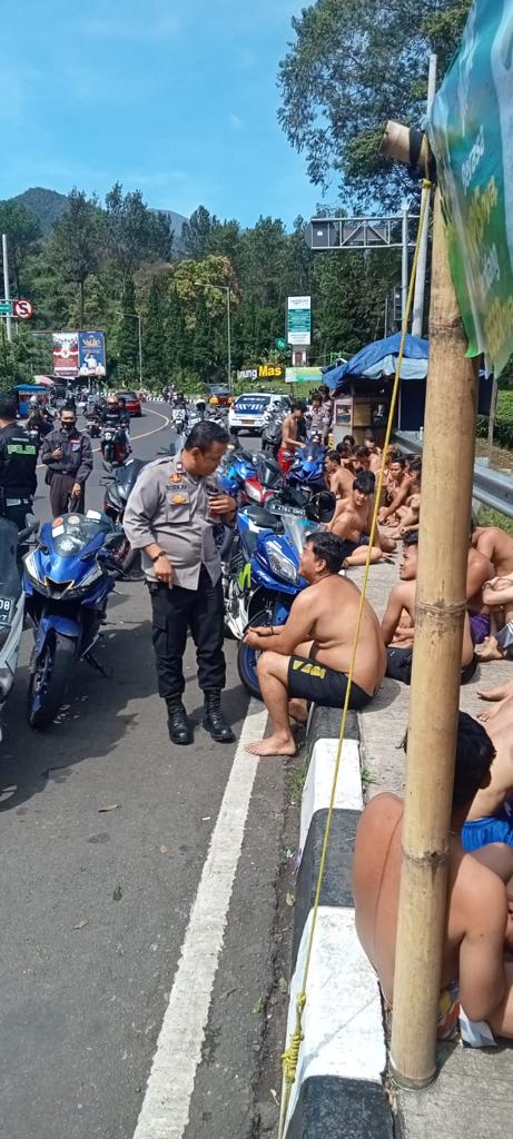 Minggu 14 mei 2023 sekitar jam 09.00 WIB Di sepanjang Jalur Wisata Puncak Desa Tugu Utara Kec Cibinong Kabupaten Bogor dilakukan Penindakan, yang mana Bermula Oleh laporan Masyarakat tentang adanya Aktivitas Komunitas Sepeda Motor Yang Mengganggu Ketertiban Umum Yang Berlokasi Di SPBU Tugu, Para Anggota Komunitas Tersebut Melakukan Konvoi Secara Ugal-ugalan Serta tidak Memakai Helm Dan Pakaian (telanjang dada) juga alas kaki, dengan Cepat Sat Lantas Polres Bogor langsung bertindak mengambil langkah antisipasi gangguan Kamtibmas tersebut.
