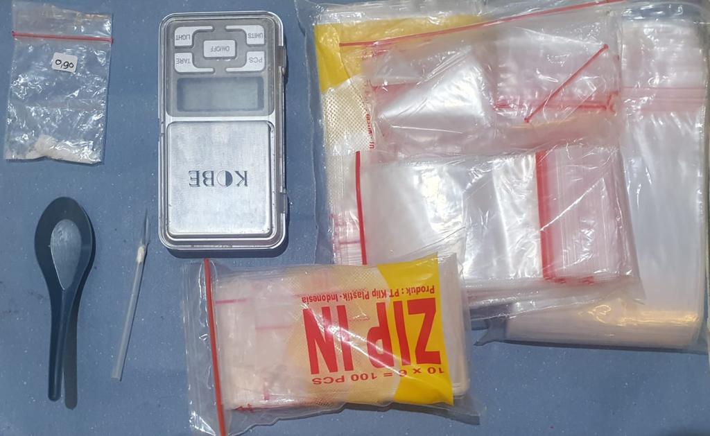 “Saat dilakukan penggeledahan ditemukan sabu 0,90 gram, satu unit handphone di kamar tidur tersangka,” ujar AKBP Daniel.