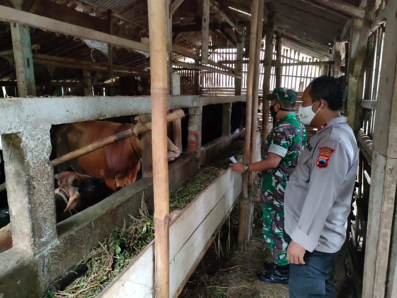 REAKSIMEDIA.COM | Banjarnegara – Dalam rangka mendukung program Pemerintah terkait antispasi penyebaran Penyakit Mulut dan Kuku (PMK) atau Virus PMK terhadap hewan ternak khususnya menjelang Idul Adha 1443 Hijriyah, Polres Banjarnegara bersama Polsek Jajaran melakukan monitoring dan pengecekan hewan ternak di Peternakan Sapi di Wilayah Kabupaten Banjarnegara, Minggu (26/6/2022).