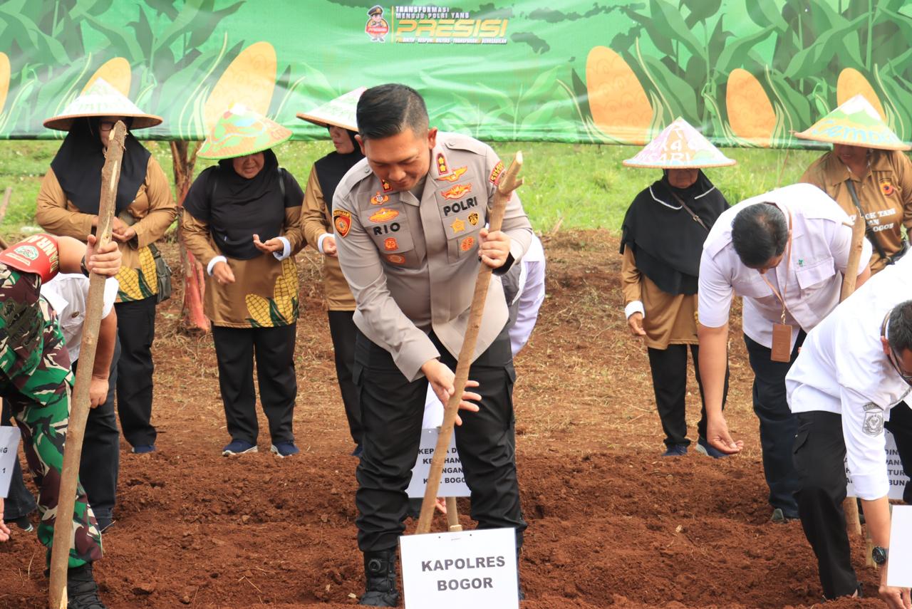 Kapolres Bogor dalam sambutannya menyampaikan bahwa kegiatan ini tidak hanya bertujuan meningkatkan produktivitas lahan, tetapi juga memperkuat sinergi antara Polri dan masyarakat dalam menjaga ketahanan pangan serta kelestarian lingkungan.