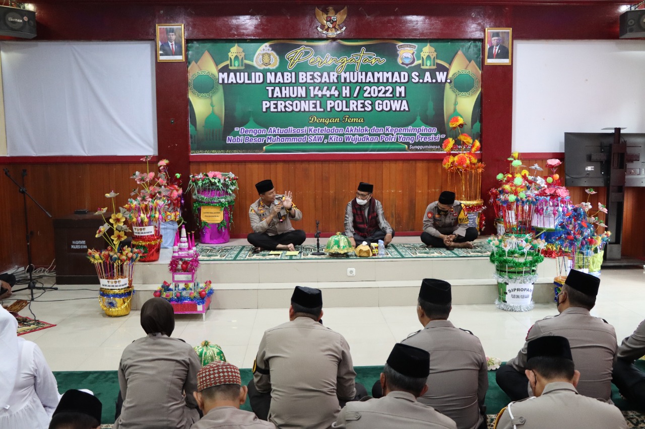 REAKSIMEDIA.COM | Gowa – Polres Gowa menggelar kegiatan Maulid Nabi Muhammad SAW 1444 H / 2022 M, bertempat di Aula Endra Dharmalaksana Polres Gowa, Selasa (11/10/2022) pagi.