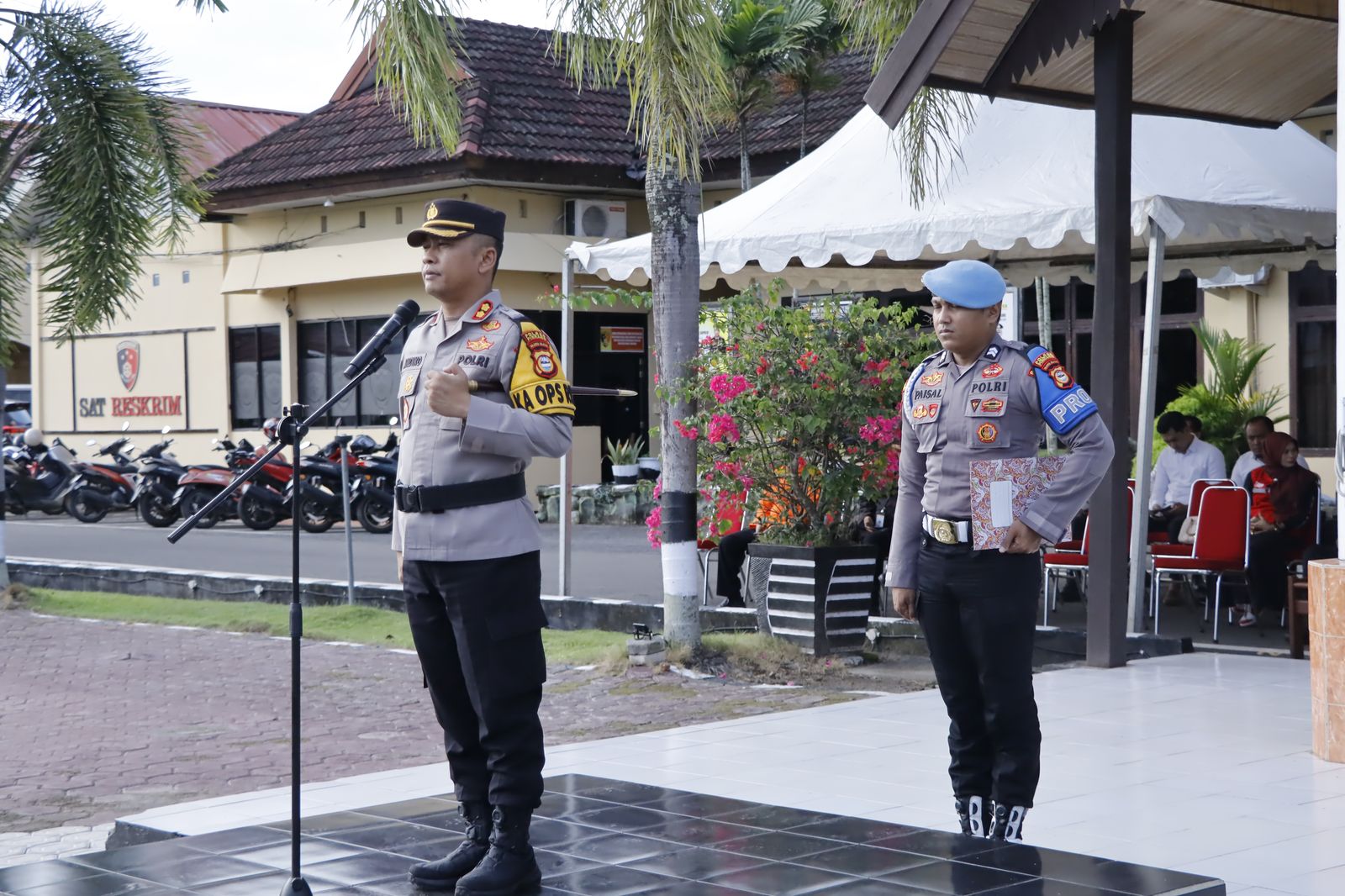 Kapolres Pinrang AKBP Andiko Wicaksono, S.I.K. bertindak sebagai pimpinan apel, sementara Ipda Arif Armin, S.E. ditunjuk sebagai komandan upacara. Apel ini dihadiri oleh Kepala BPBD Kabupaten Pinrang Dr. Rommy M. Manule, M.Si., Kepala Dinas Kesehatan Drg. Dyah Puspita Dewi, M.Kes., serta perwakilan dari Satpol PP, KBPP , Para PJU Polres Pinrang dan Para Kapolsek Jajaran.