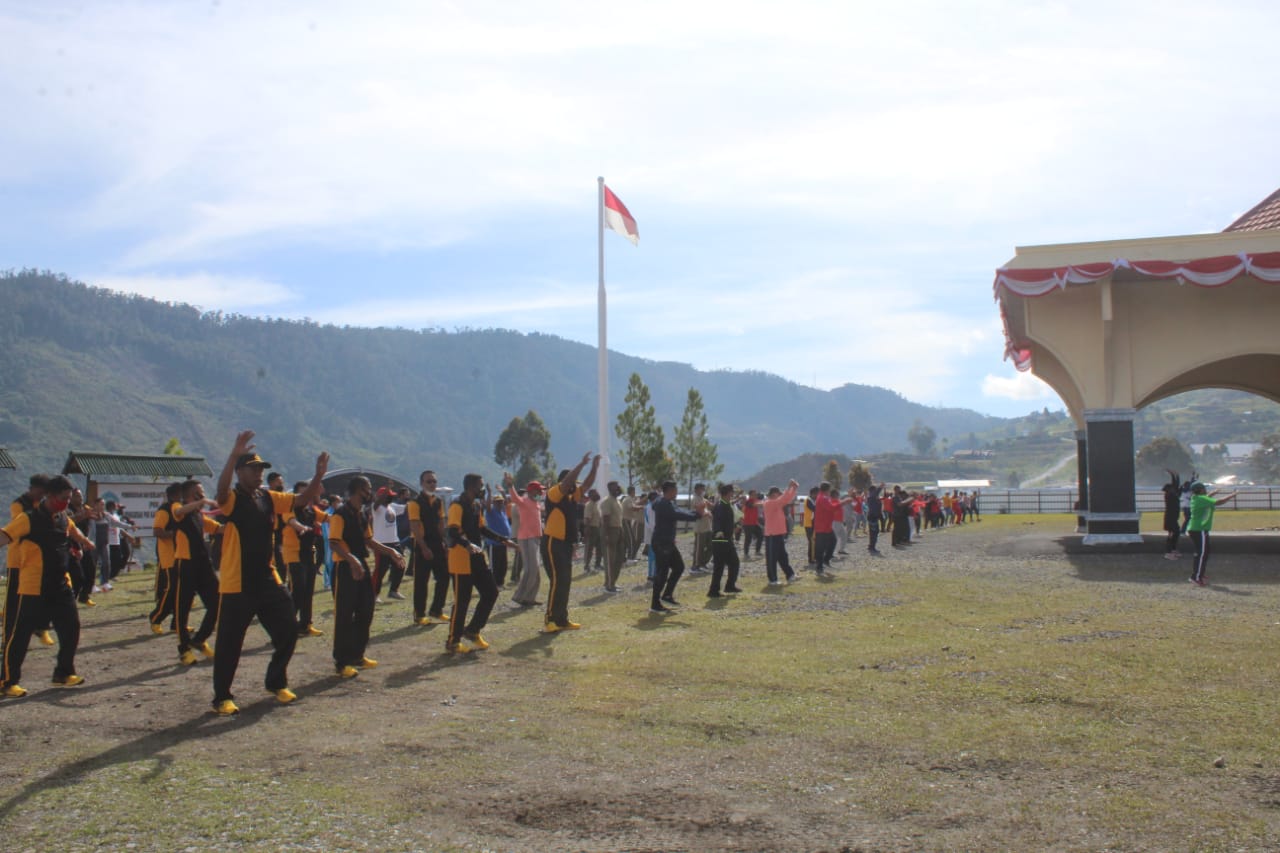 Kapolres Puncak Jaya Kompol Ridwan, SH MH melalui Wakapolres Puncak Jaya Kompol Irianto John, S.Sos saat dikonfirmasi mengatakan bahwa dalam rangka menjaga kebugaran dan kekuatan fisik tetap terjaga terutamanya dimasa pandemi virus corona saat ini, kami dari Polres Puncak Jaya rutin mengikuti kegiatan olahraga bersama yang dilaksanakan di Kantor Bupati Puncak Jaya.