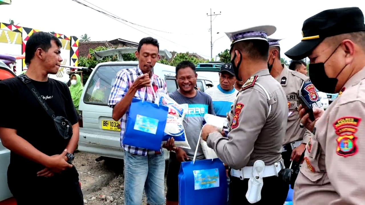 “Bansos yang disalurkan berupan paket bahan sembako termasuk beras kepada 50 paket kepada pengemudi angkutan pedesaan lintas Gisting, Gunung Alip dan Talang Padang,” kata AKP Amsar mewakili Kapolres Tanggamus AKBP Satya Widhy Widharyadi, S.I.K., M.K.P usai kegiatan.