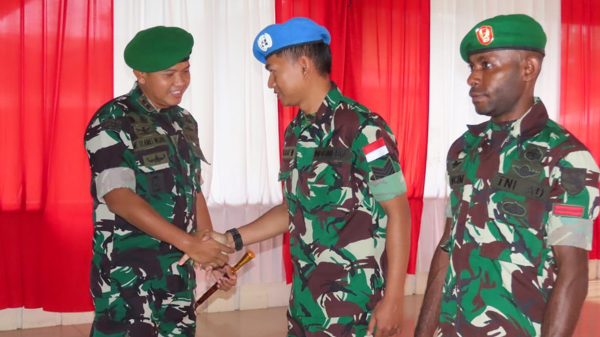 Dandim 1710/Mimika Pimpin Acara Tradisi Korps Raport Masuk Satuan dan Pelepasan Personel Satgas BGC TNI Konga XXXIX-G Monusco TA 2024