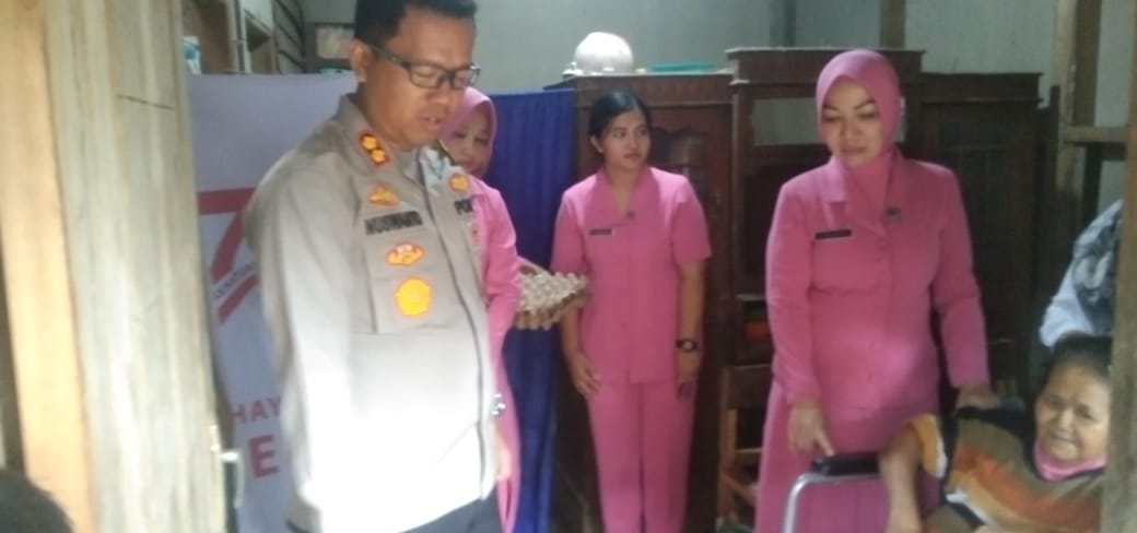 REAKSIMEDIA.COM | Mukomuko – Kapolres Mukomuko bersama Ketua Bhayangkari Cabang Mukomuko dan anggotanya menyerahkan bantuan kursi Roda kepada ibu Cicih (62 thn) yang menderita lumpuh sejak 7 tahun silam di Desa Sinar Jaya Kecamatan Air Manjuto Kabupaten Mukomuko, Rabu Sore (6/9/23).
