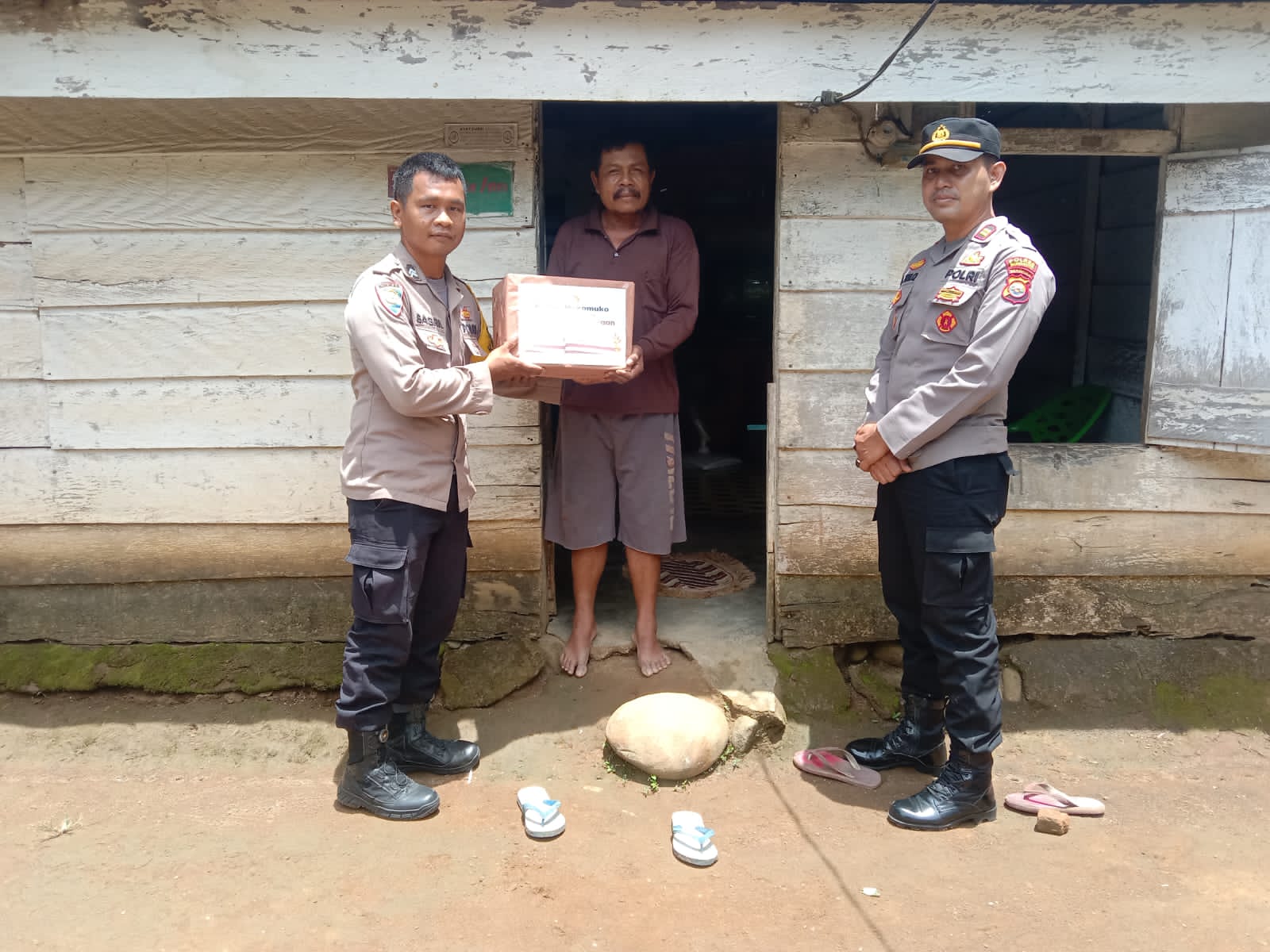 REAKSIMEDIA.COM | Mukomuko – Polres Mukomuko melalui Polsek Teras Terunjam kembali menyalurkan bantuan kemanusiaan untuk negeri yang diberikan kepada warga yang membutuhkan di saat bulan suci ramadhan tahun ini. Melalui program Bantuan Kemanusiaan Untuk Negeri yang di canangkan Polda Bengkulu, Kapolsek Teras Terunjam bersama Bhabinkamtibmas salurkan bantuan bansos berupa sembako kepada masyarakat kurang mampu di wilayah binaan Polsek Teras Terunjam, Minggu (2/4/23).