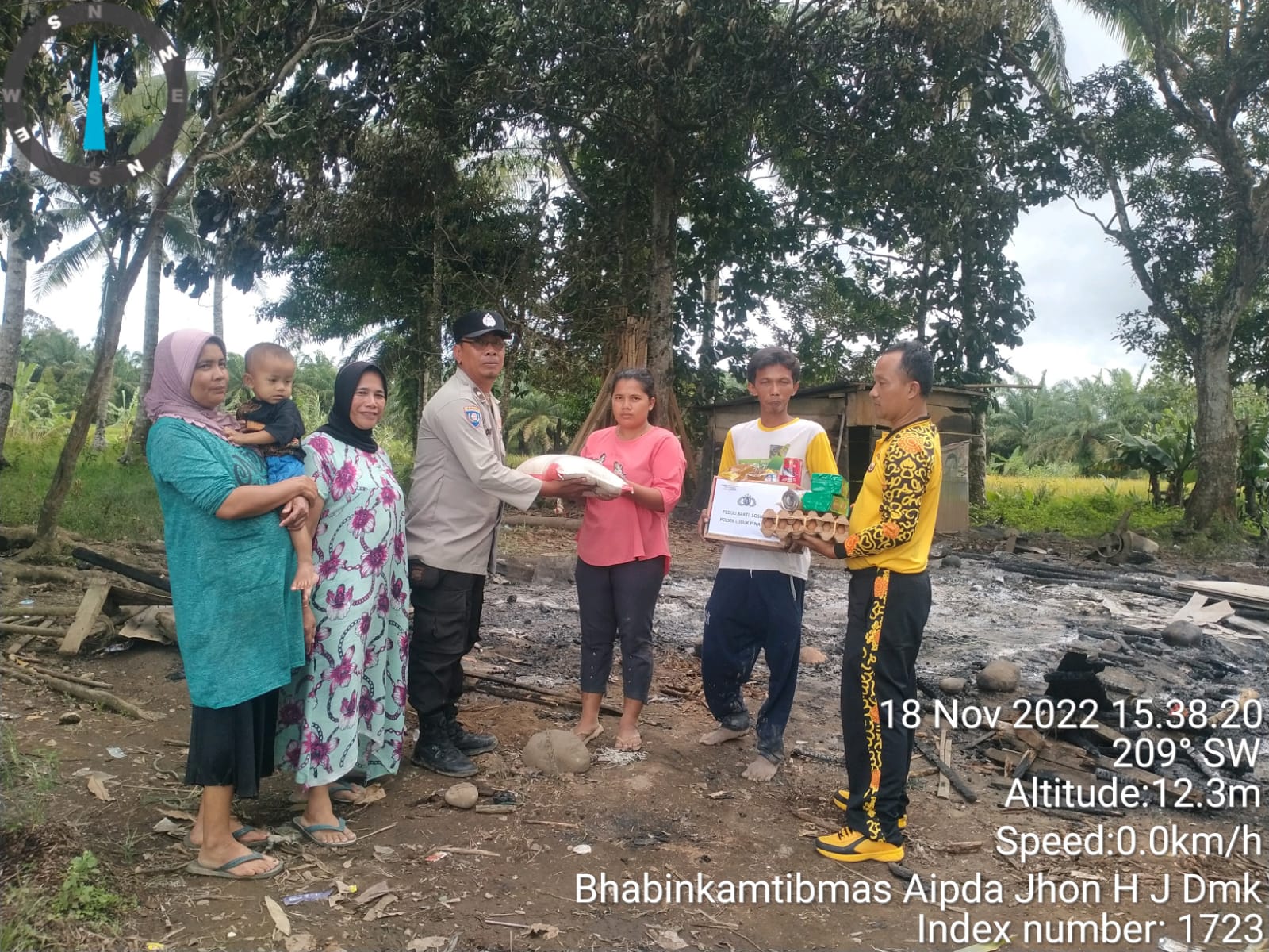 REAKSIMEDIA.COM | Mukomuko – Polsek Lubuk Pinang yang diwakili Kanit Binmas Aiptu Hosnan Efendi bersama Bhabinkamtibmas Aipda Jhon H.J Damanik melaksanakan Bakti Sosial dengan memberikan Bansos kepada warga yang menjadi korban kebakaran di Gg.Becej Desa Lubuk Pinang, Kecamatan Lubuk Pinang, Kabupaten Mukomuko, Jumat (18/11/22).