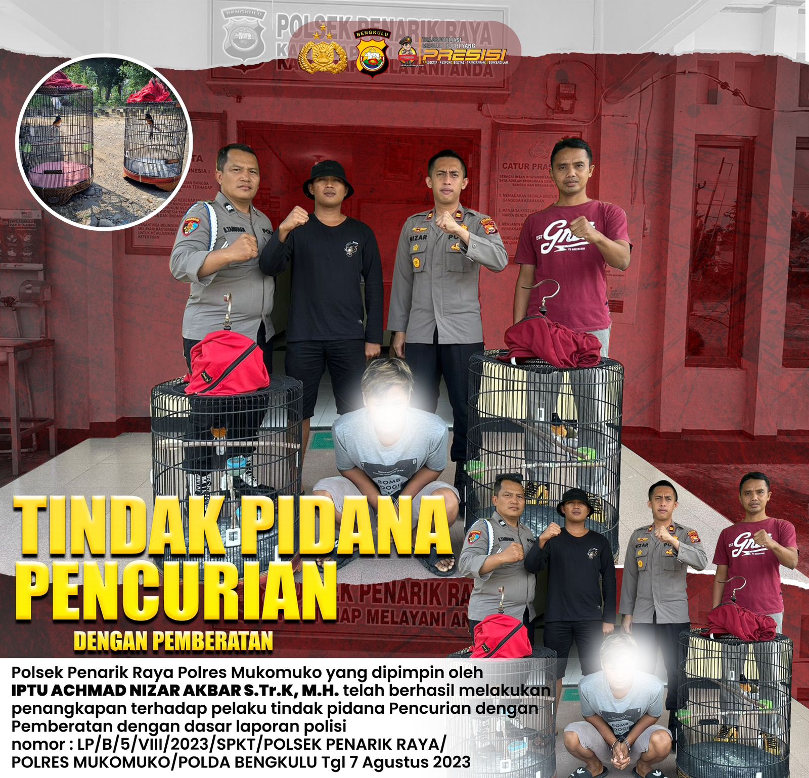 Kapolres Mukomuko AKBP Nuswanto SIK MH melalui Kapolsek Penarik Raya Iptu Achmad Nizar Akbar S,Tr.K MH menyebutkan bahwa pelaku berinisial RN (30) ditangkap karena diduga telah melakukan tindak pidana pencurian dengan pemberatan,” berdasarkan laporan dari korban dan pemeriksaan para saksi, kami selanjutnya melakukan penyidikan, dan akhirnya pelaku ini dapat kami ringkus,” terang Iptu Achmad Nizar.