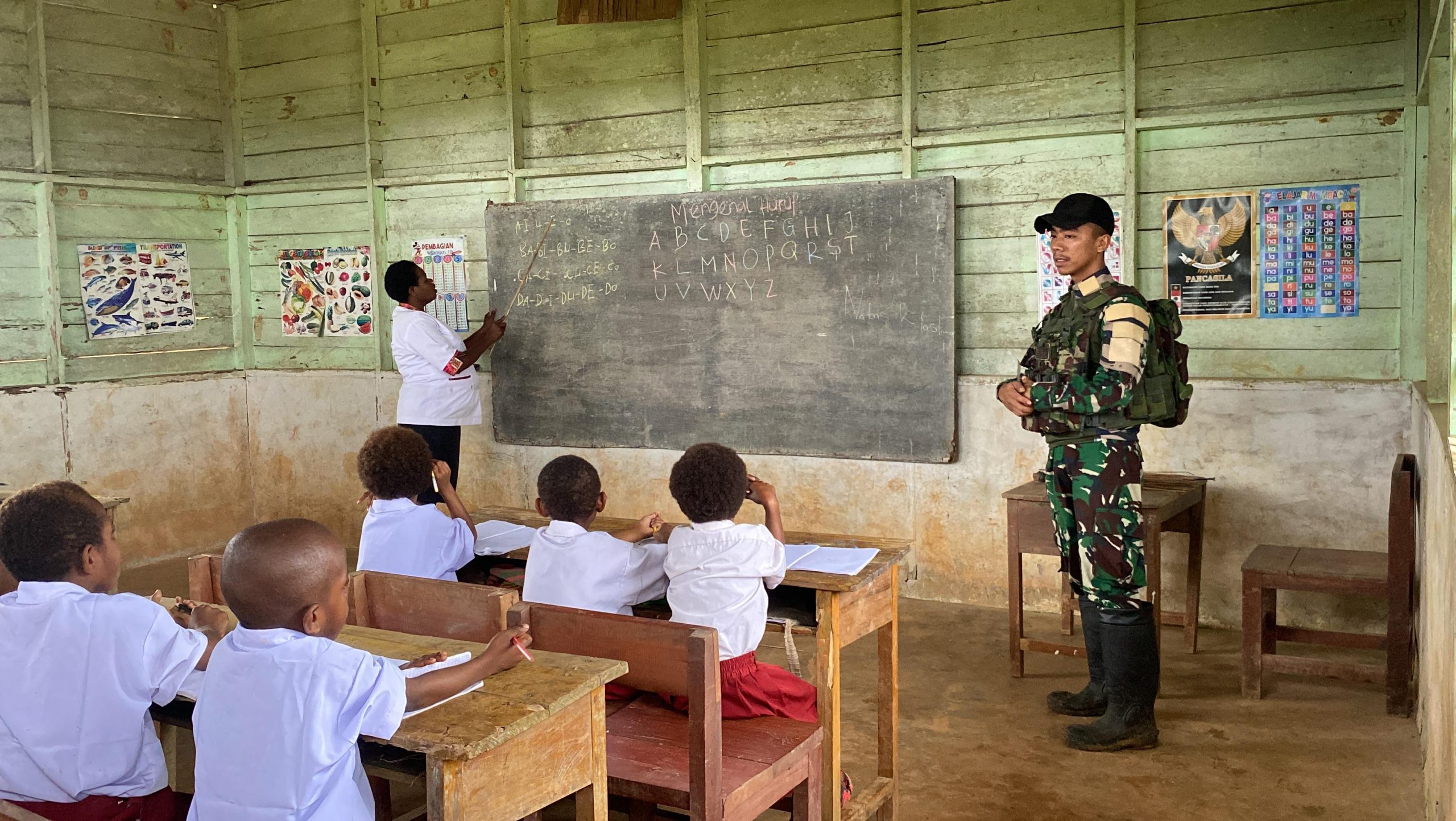 REAKSIMEDIA.COM | Boven Digoel – Di Kampung Upkim prajurit TNI hadir sebagai penggerak perubahan di bidang pendidikan. Melalui peran mereka sebagai tenaga pengajar di SD YPPK Fransiskus Xaverius Dumuy Upkim, Senin (25/8/2025), para prajurit membantu guru untuk mengajar, serta menanamkan semangat kebangsaan dan karakter positif kepada generasi muda. Kehadiran mereka di ruang kelas menjadi bukti nyata pengabdian yang melampaui tugas pokok pertahanan negara.