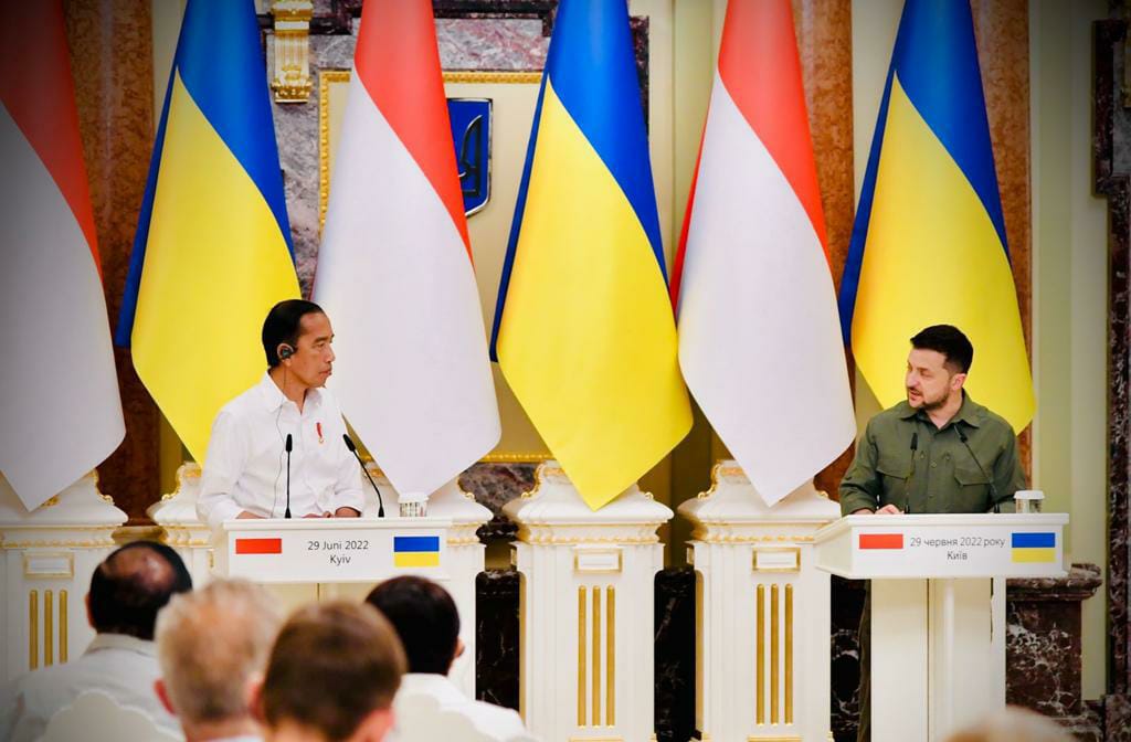“Saya sampaikan ke Presiden Zelenskyy bahwa kunjungan ini saya lakukan sebagai manifestasi kepedulian Indonesia terhadap situasi di Ukraina,” ujar Presiden Jokowi saat menyampaikan pernyataan pers bersama Presiden Zelenskyy selepas pertemuan.