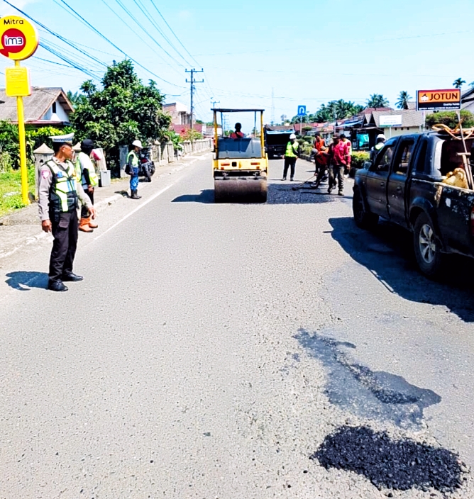 Bersinergi Dengan Dinas PUPR, Satlantas Polres Mukomuko Lakukan Penambalan Jalan Berlubang Demi Kenyamanan Masyarakat Dalam Operasi Ketupat 2026
