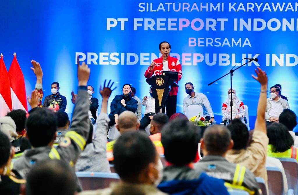 “Saya senang PDRB di Kabupaten Mimika 68 persen itu berasal dari Freeport. Jadi Bapak, Ibu sekalian memiliki kontribusi yang besar kepada Kabupaten Mimika. Kontribusi terhadap PDRB di Papua itu sebesar 34 persen, juga gede sekali,” ujar Presiden Jokowi.