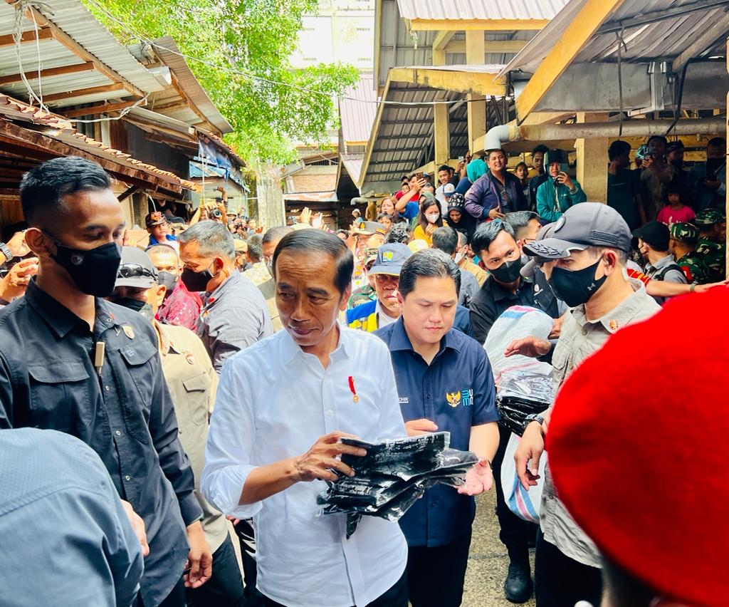 REAKSIMEDIA.COM | Dumai – Presiden Joko Widodo meninjau aktivitas perekonomian di Pasar Bunda Sri Mersing, Kota Dumai, pada Kamis, 5 Januari 2023. Tiba sekitar pukul 14.00 WIB, Presiden langsung menyapa sekaligus menyerahkan bantuan sosial kepada para pedagang pasar dan pedagang kaki lima (PKL).
