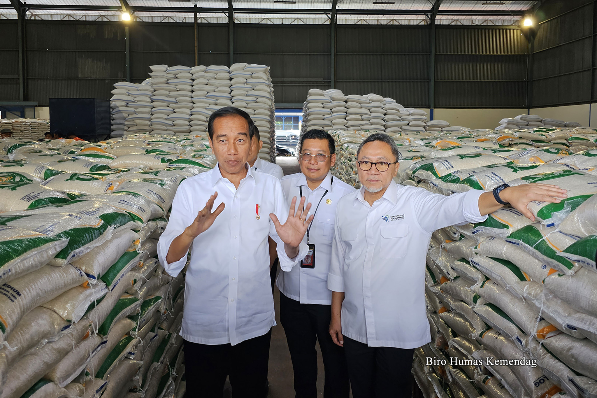 REAKSIMEDIA.COM | Sukoharjo – Presiden RI, Joko Widodo didampingi Menteri Perdagangan, Zulkifli Hasan meluncurkan penyaluran Cadangan Beras Pemerintah (CBP) untuk bantuan pangan tahun 2023 yang diselenggarakan di Perum Bulog Pusat Distribusi Ngabeyan, Sukoharjo, Jawa Tengah, Senin (10/4/2023).