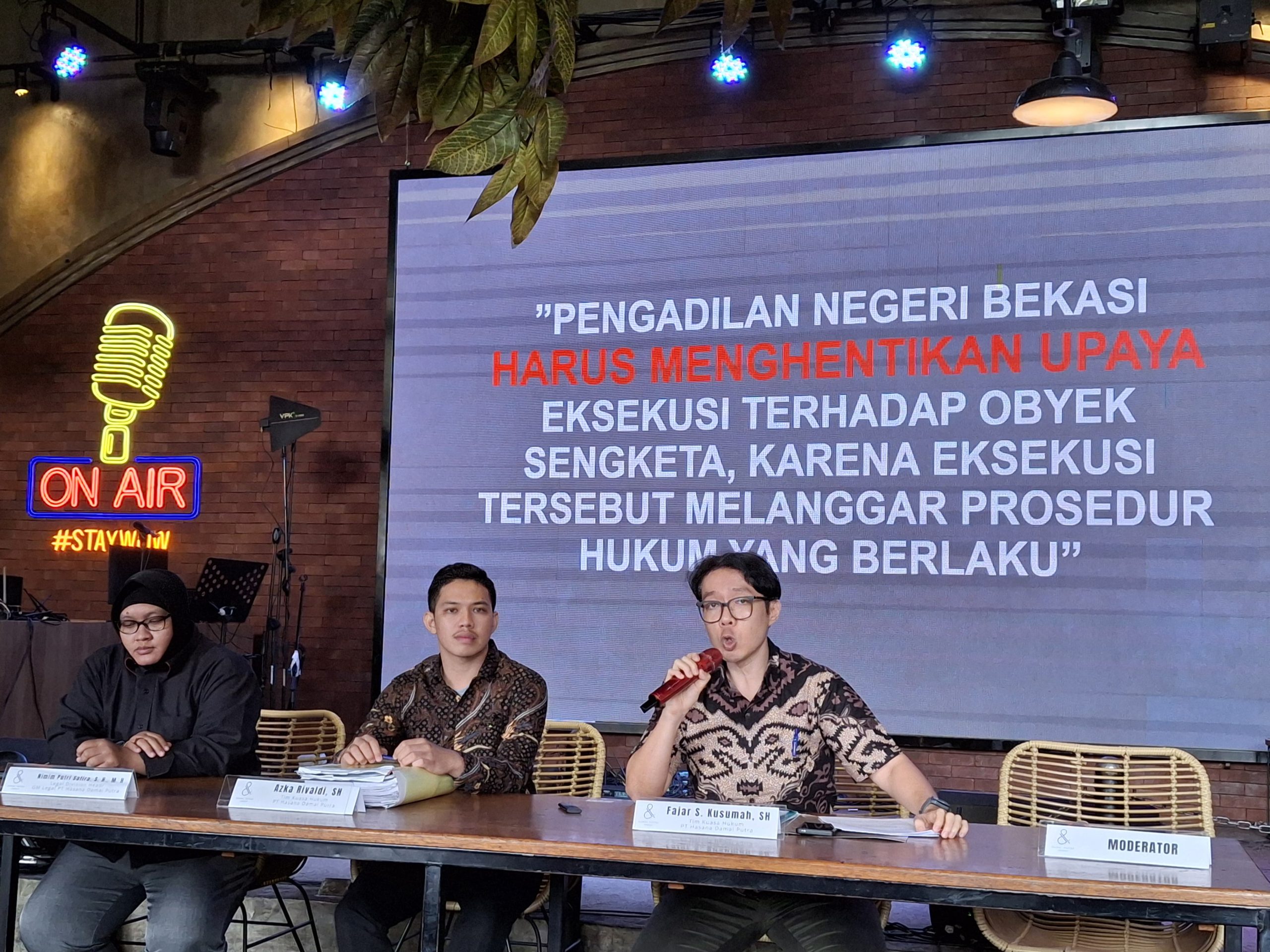PT Hasana Damai Putra (Damai Putra Group) menanggapi rencana eksekusi lahan oleh Pengadilan Negeri (PN) Bekasi yang dinilai bertentangan dengan prosedur hukum yang berlaku. Perusahaan ini tegas menolak eksekusi tersebut, yang dianggap mengabaikan proses hukum yang masih berjalan. Menurut kuasa hukum PT Hasana Damai Putra, Fajar S Kusumah, tindakan ini berisiko menciptakan pelanggaran hukum serius, mengingat adanya dua putusan yang bertentangan tentang status lahan yang sama,ujarnya kepada para wartawan saat press conference di Cafe WoW Jakarta-Selatan, Selasa, (3/11/2024)