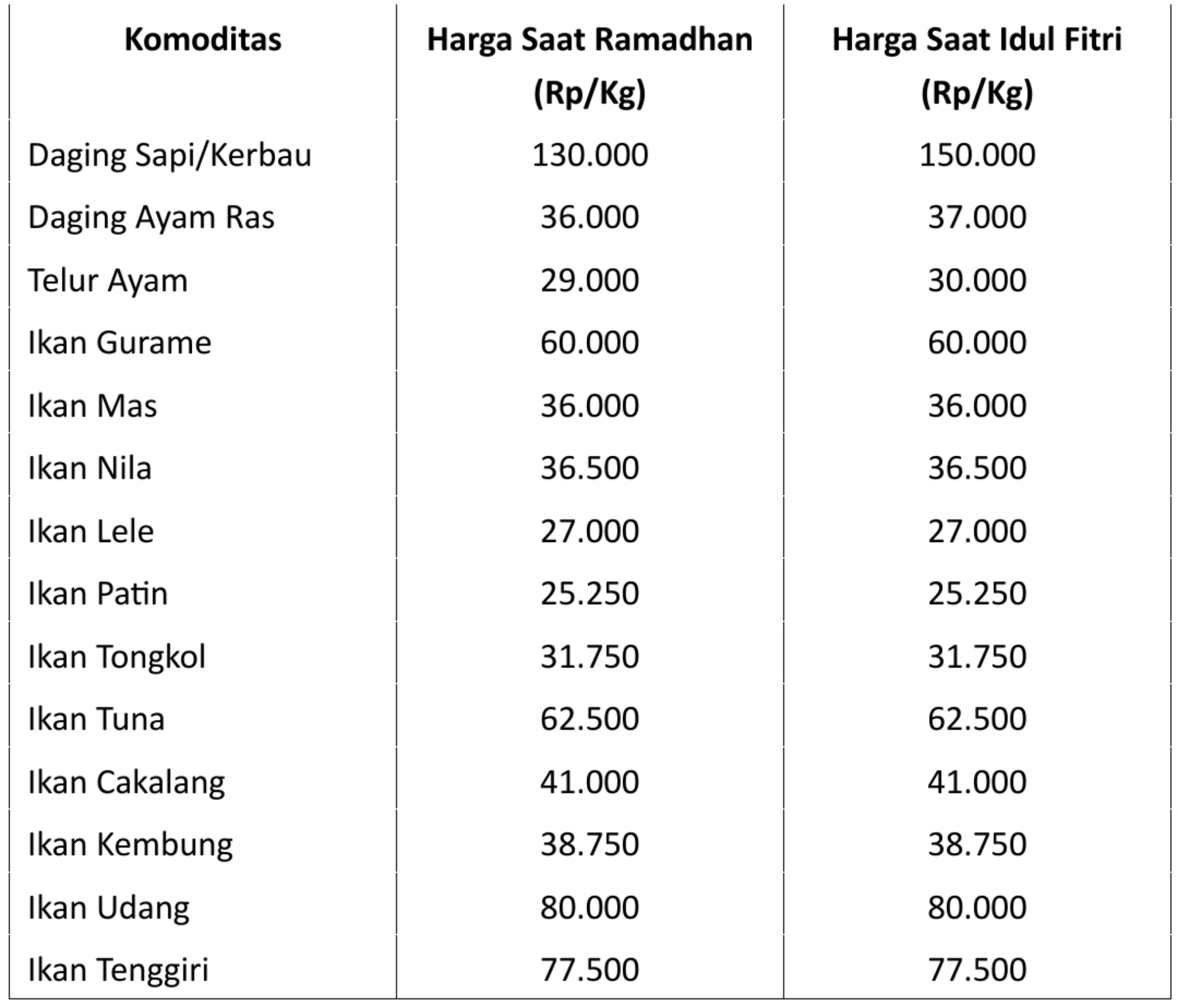 Walaupun ketersediaan mencukupi, hukum pasar tetap berlaku; semakin tinggi permintaan maka hargapun semakin meningkat. Dengan demikian kenaikan harga menjelang idul fitri tidak dapat dielakan.