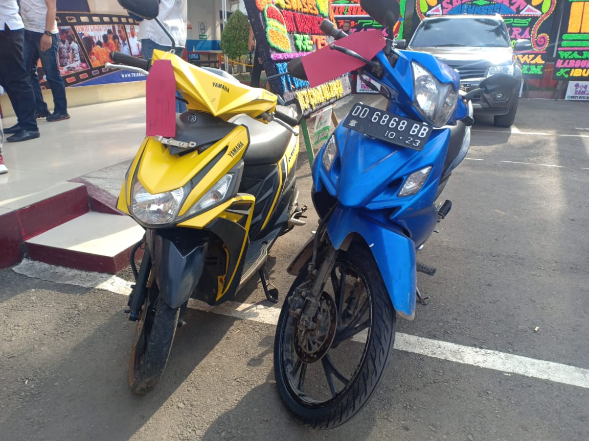 Dalam penangkapan tersebut berhasil diamankan satu unit sepeda motor dari hasil kejahatan selanjutnya dibawa ke kantor Polsek Parangloe.