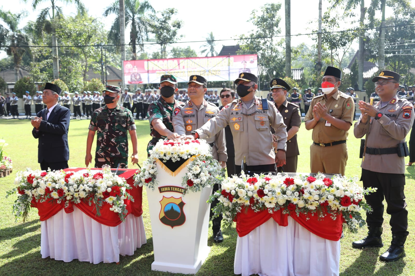 REAKSIMEDIA.COM | Magelang – Kapolda Jateng Irjen Pol Ahmad Luthfi meresmikan naiknya tipe Polres Magelang menjadi Polresta Magelang. Peresmian tersebut dilaksanakan saat memimpin upacara pengukuhan kenaikan tipe di Mapolresta Magelang pada Selasa, (8/11) pagi.