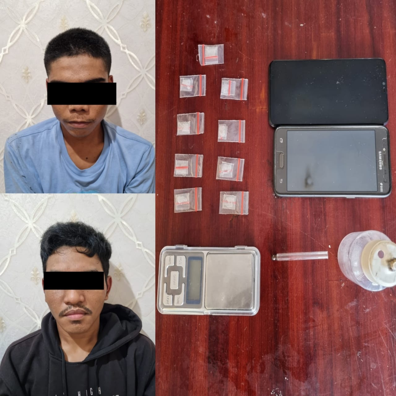 Dua Pelaku inisial HM dan SP warga Kecamatan Sajira di tangkap Sat Resnarkoba Polres Lebak Polda Banten berikut barang bukti 9 (sembilan) bungkus plastik bening Sabu, 1 (satu) buah timbangan digital, 1 (satu) buah pivet kaca, 1 (satu) buah alat hisap atau bong, 1 (satu) unit handphone merk Samsung type J2, 1 (satu) unit handphone merk oppo type A5s.
