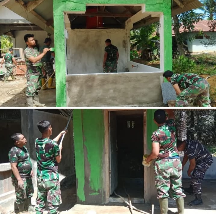 Agar Tampak Lebih Bersih & Nyaman, Satgas TMMD-125 Kodim 0428/MM Cat MCK Pura Desa Sumber Makmur