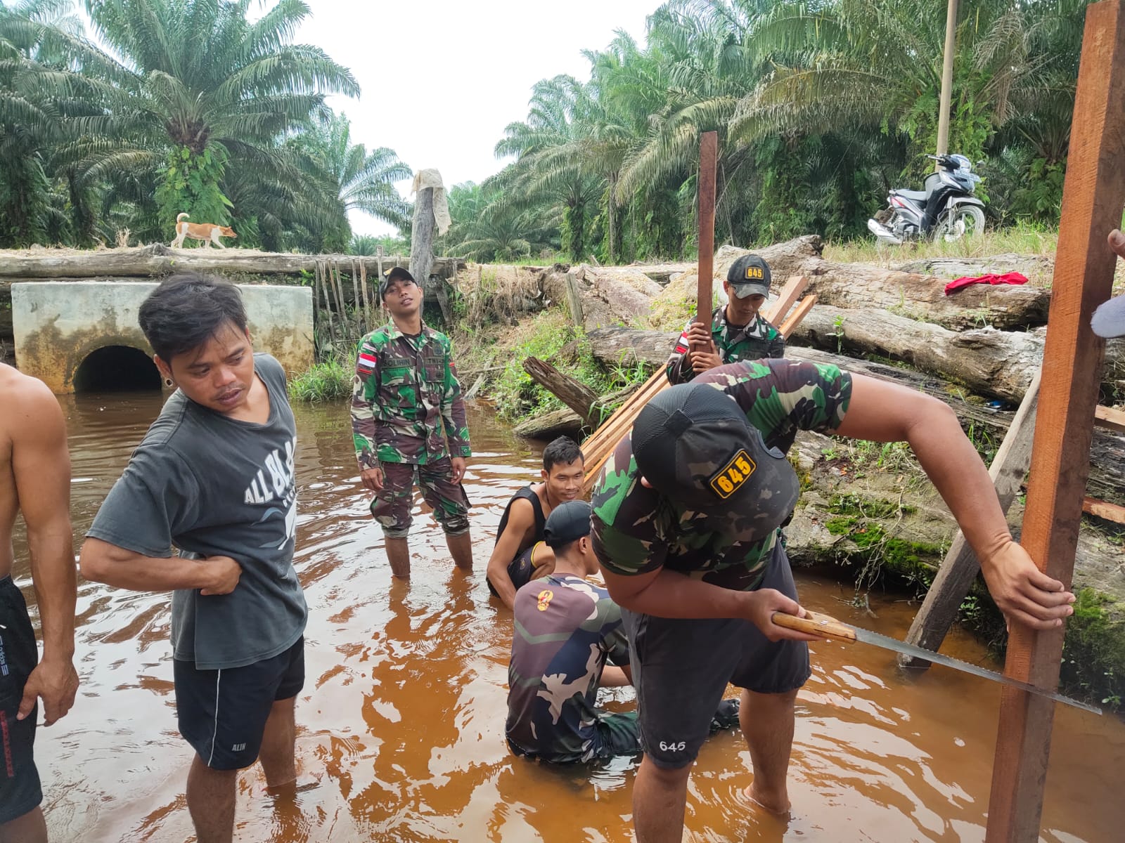 REAKSIMEDIA.COM | Bengkayang – Prajurit Pos Kumba Semunying Satuan tugas Pengamanan perbatasan (satgas pamtas) RI-Malaysia Yonif 645/Gardatama Yudha dipimpin oleh Wadanpos Serda Galih beserta 5 (lima) orang anggota bantu warga masyarakat perbatasan dalam Karya Bhakti pembuatan jamban mandi, bertempat di dusun peleng desa sinar baru kecamatan jagoi babang Kabupaten Bengkayang.