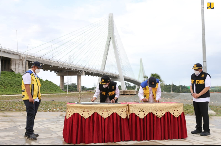 “Saya datang ke sini sekaligus menandatangani prasasti ini sebagai bentuk pertanggungjawaban kepada publik atas infrastruktur yang sudah selesai dibangun, di mana tertera pula nama kontraktor dan konsultan. Kami semua ikut bertanggung jawab,” kata Menteri Basuki.
