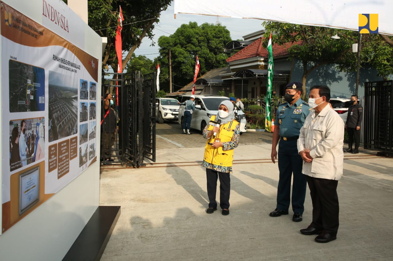 REAKSIMEDIA.COM | Sidoarjo – Pemerintah melalui Kementerian Pekerjaan Umum dan Perumahan Rakyat (PUPR) telah menyelesaikan pembangunan Rumah Khusus (Rusus) bagi keluarga prajurit KRI Nanggala 402 yang gugur saat latihan di Laut Bali, 21 April lalu. Serah terima kunci secara simbolis dilakukan oleh Menteri Pertahanan Prabowo Subianto didampingi Kepala Staf Angkatan Laut (KSAL) Laksamana TNI Yudo Margono dan Direktur Rumah Khusus, Ditjen Perumahan Kementerian PUPR Yusniewati, kepada perwakilan dari 53 ahli waris prajurit di Sidoarjo, Jawa Timur, Rabu (20/4/2022).