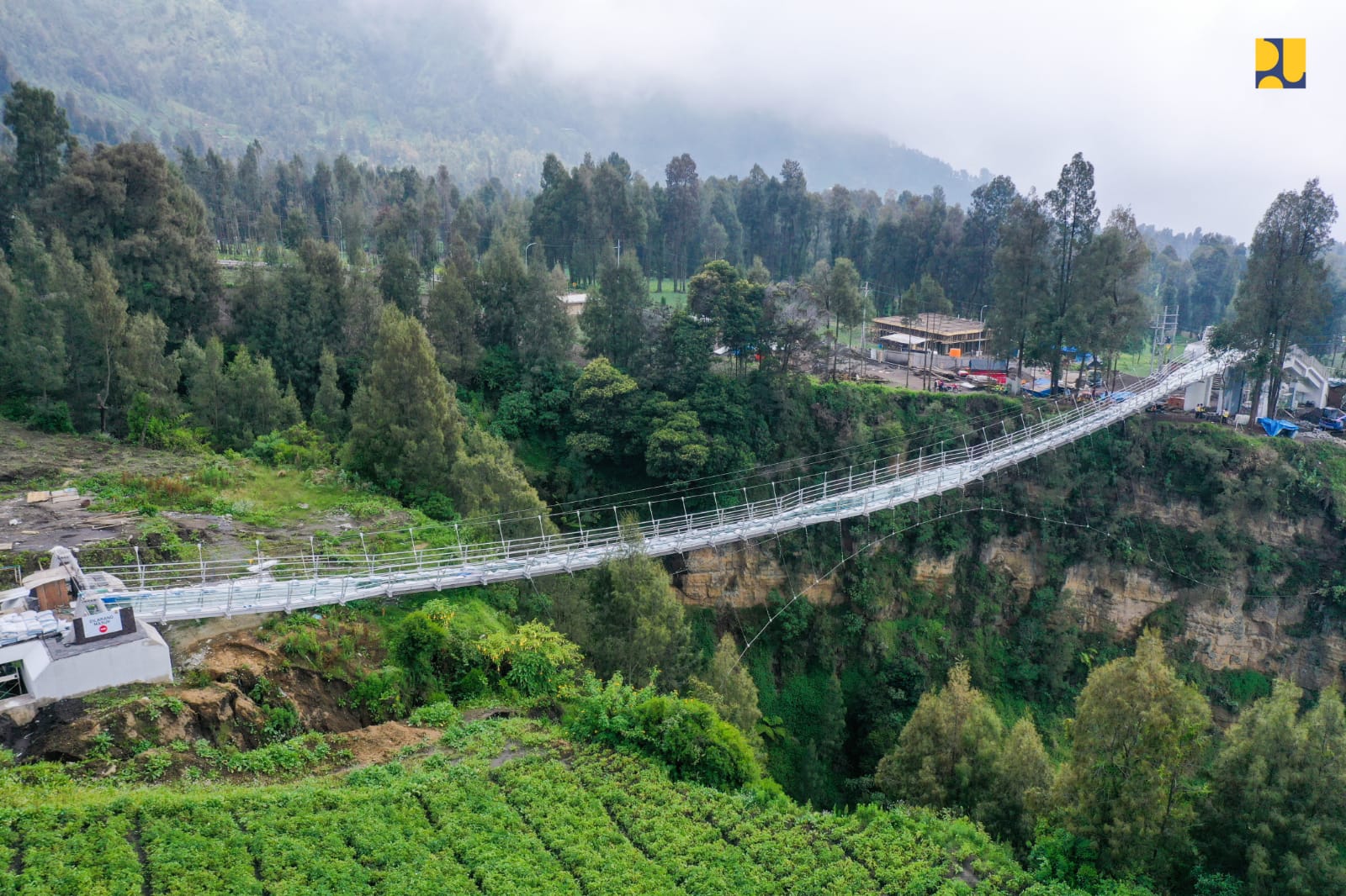 REAKSIMEDIA.COM | Jakarta – Kementerian Pekerjaan Umum dan Perumahan Rakyat (PUPR) telah menyelesaikan pembangunan Jembatan Kaca Seruni Point di Kawasan Strategis Pariwisata Nasional (KSPN) Bromo-Tengger-Semeru, Jawa Timur. Saat ini tengah dilakukan uji beban (loading test) pada Jembatan Kaca Seruni Point (prototype) untuk menguji performa stuktur dan keamanan jembatan, sehingga memberikan jaminan keamanan dan keselamatan bagi wisatawan setelah dioperasikan nanti.