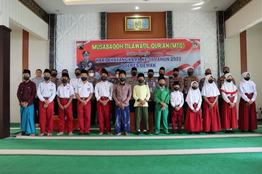 REAKSIMEDIA.COM | Demak – Semarakkan Hari Bhayangkara ke-76, Polres Demak menggelar lomba Musabaqah Tilawatil Qur’an (MTQ) yang diikuti para siswa-siswi SD, SMP dan SMA sederajat di Kabupaten Demak.