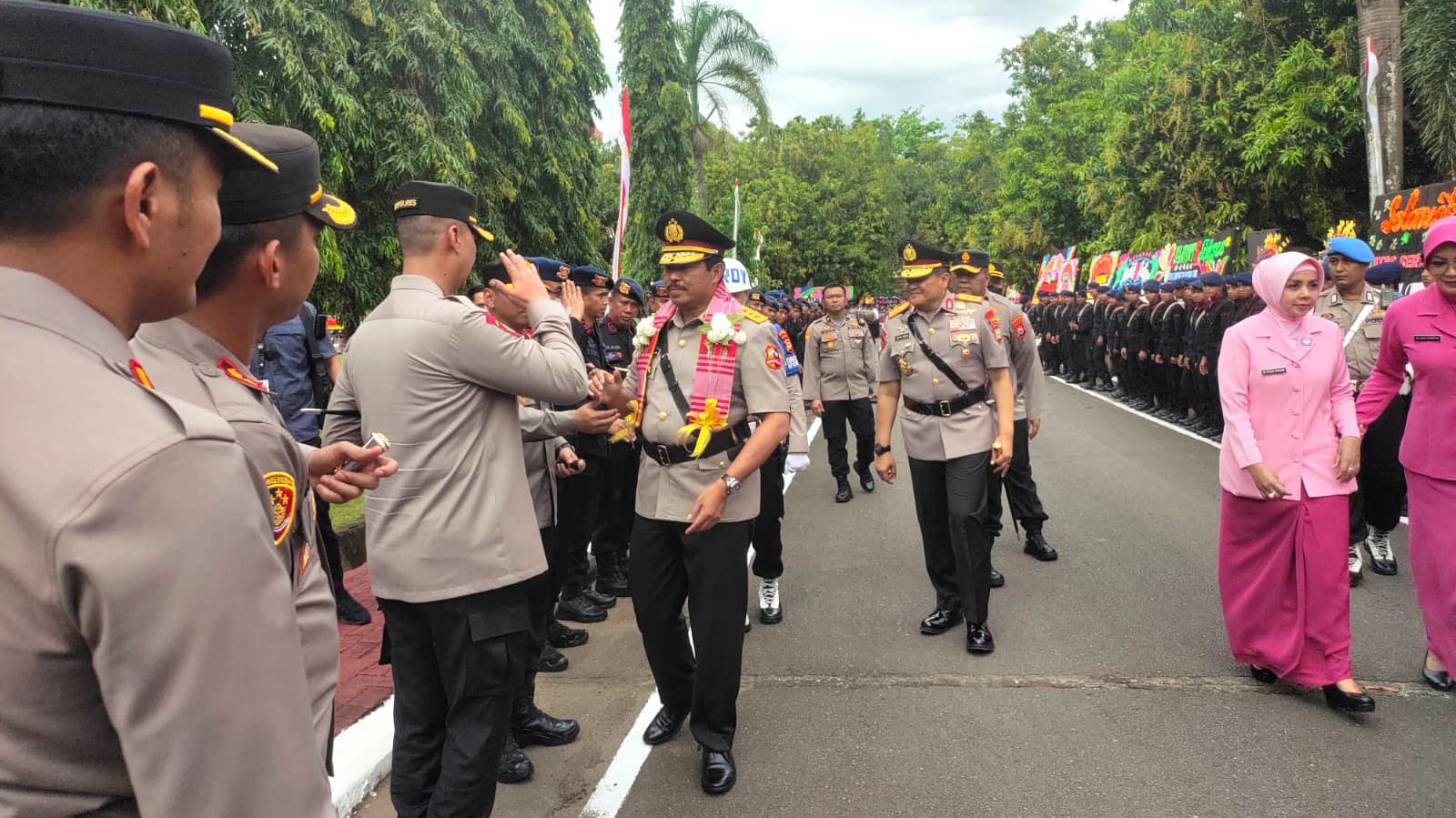 REAKSIMEDIA.COM | Makassar – Orang nomor satu di Mapolres Pinrang AKBP Santiaji Kartasasmita, S.I.K bersama Ketua Bhayangkari Cabang Pinrang Ny. Renzy Santiaji menghadiri langsung acara serah terima jabatan (Sertijab) dari Kapolda Sulsel Komjen Pol (Purn) Drs Nana Sudjana AS,MM kepada Kapolda Sulsel yang baru Irjen Pol Drs Setyo Boedi Moempoeni Harso,SH.,M.Hum.