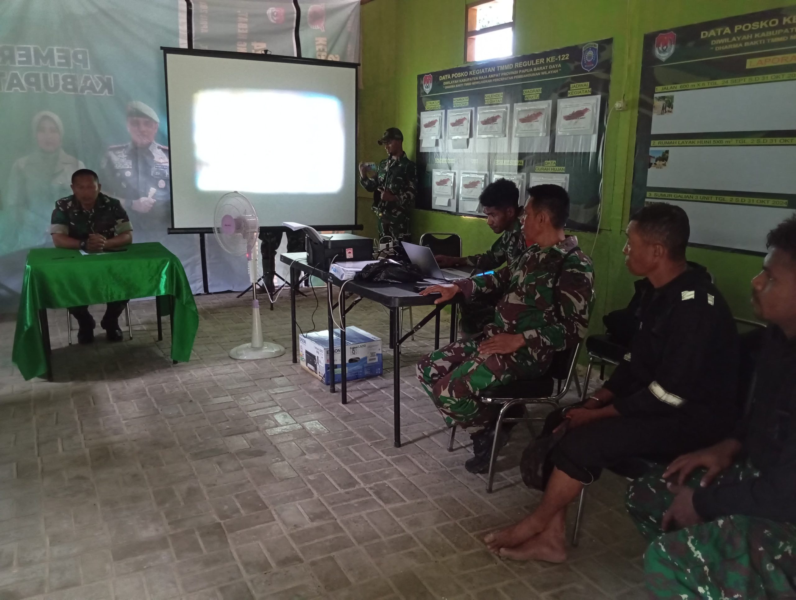 REAKSIMEDIA.COM | Raja Ampat – Dandim 1805/Raja Ampat Letkol Czi Tri Wibowo Angga Astono selaku Dansatgas TMMD Ke-122 Kodim 1805/Raja Ampat berikan arahan dan motivasi kerja kepada anggota satgas yang berlokasi di Kampung Saporkren, Kab. Raja Ampat, Minggu (13/10/2024).