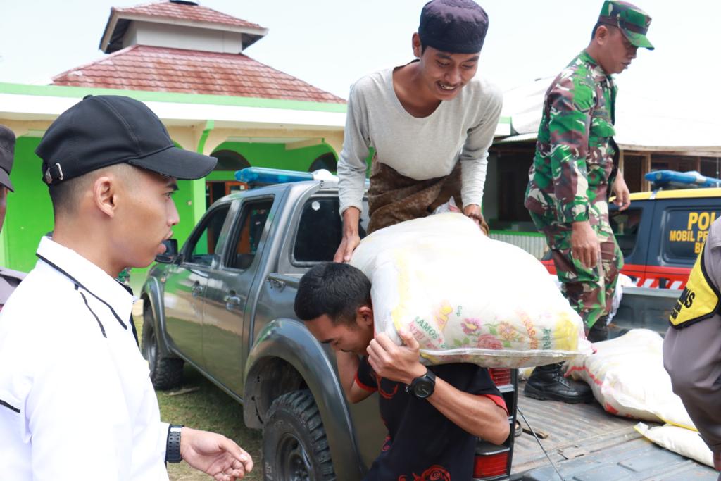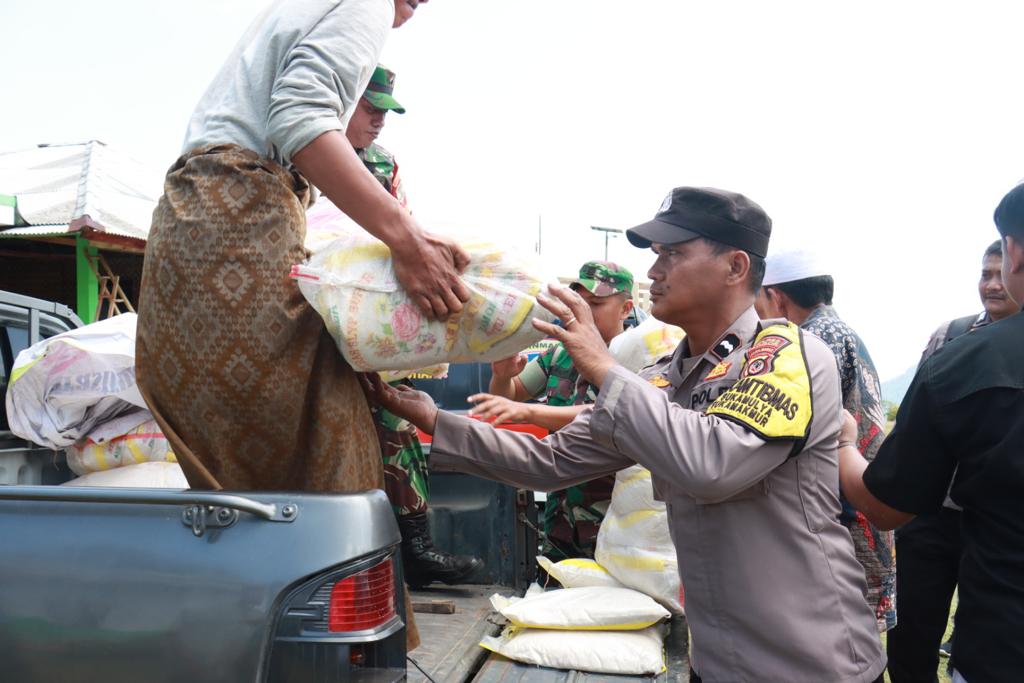 Dalam pendistribusian bantuan sosial kali ini kami mendistribusikan sebanyak 100 paket beras Yang langsung kita serahkan kepada pimpinan pondok pesantren Riyadhuljannah Paku Bumi Ustadz Solihin, dan kami berharap dengan bantuan sosial yang diberikan oleh Bapak Kapolri ini tentunya dapat bermanfaat, Jelas AKP Hendra Kurnia.