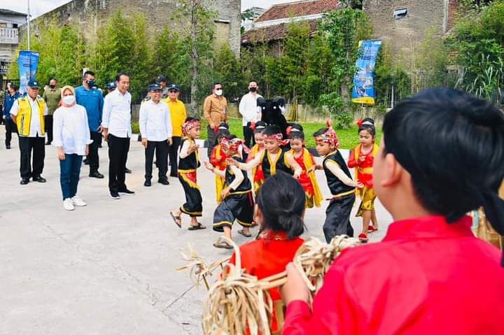 REAKSIMEDIA.COM | Bandung – Presiden Joko Widodo dan Ibu Iriana Joko Widodo disambut kesenian daerah “Dodombaan” dan tari “Buncis” saat keduanya tiba di Kolam Retensi Andir, Kabupaten Bandung, Provinsi Jawa Barat, Minggu, 5 Maret 2023. Kehadiran Presiden di tempat tersebut adalah untuk meresmikan sejumlah infrastruktur.