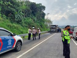 REAKSIMEDIA.COM | Ungaran – Sekitar pukul 04.30 wib Tol ungaran solo mengalami ketersendatan tepatnya di KM 433.800 jalur A. Bus Po. STJ mengalami kebakaran yang menghanguskan sebagian besar badan bus. Kasat lantas Polres Semarang AKP Rendy Johan P. S.H., S.I.K., M.A.P. didampingi KBO Lantas IPTU Zaenudin S.H.,.M.H. beserta Kanit Gakkum IPDA Andy Taufan S.Tr.K. memimpin langsung evakuasi badan bus yang mengalami kebakaran.