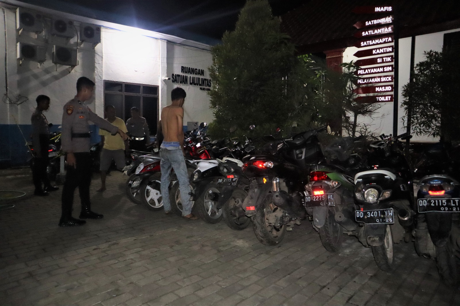 “Awalnya tim Respek Presisi Polres Gowa menerima informasi bahwa adanya sekelompok yang diduga geng motor ini dibuntuti oleh beberapa personel dari tim tersebut. Setelah sesampainya diobejk wisata yang ada di wilayah Parangloe, kelompok yang diduga geng motor ini dan selanjutnya tim melakukan pemeriksaan dan penggeledahan,” ungkap Kapolres Gowa AKBP Reonald T.S Simanjuntak melalui Kabag Ops Polres Gowa AKP Darwis Daud, S.H dihadapan awak media, jumat (17/3) malam.