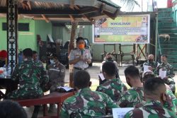 REAKSIMEDIA.COM | Muara Tami, Jayapura – Satgas Pamtas RI-PNG Yonif 131/Brs dan unsur Customs, Immigration Quarantine, Security (CIQS) Pos Lintas Batas negara (PLBN) Skouw menerima sosialisasi Kekarantinaan dari Kepala Karantina Kelas I Jayapura di perbatasan Skouw Distrik Muara Tami, Jayapura, Jum’at (16/07/2021).