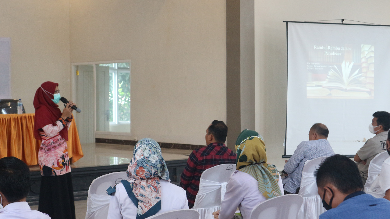REAKSIMEDIA. COM | Lampung Tengah — Penyidik – – Penyidik Pembantu Se Lampung Tengah melakukan Pelatihan peningkatan kemampuan berbahasa Indonesia Bertempat di Aula Admani Wedhana Polres Lampung Tengah dengan Ketua Tim Dina Ardian S.Pd. Dari kantor bahasa Prov Lampung ditema oleh waka Polres Kompol Suparman S.Pd. M.Si mewakili Kapolres Lampung Tengah AKPB Wawan Setiawan,S.Ik, Rabu (16/06/2021).
