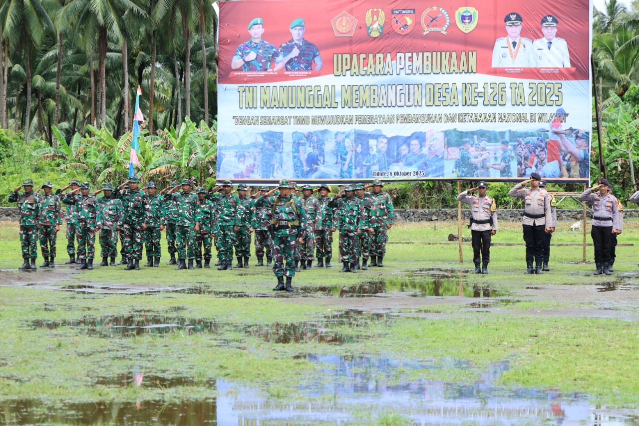 REAKSIMEDIA.COM | Tidore Kepulauan – Program TNI Manunggal Membangun Desa (TMMD) ke-126 Tahun 2025 secara resmi dibuka oleh Wali Kota Tidore Kepulauan, Muhammad Sinen, SE., bertempat di Lapangan Bola Desa Wama, Kecamatan Oba Selatan, Kota Tidore Kepulauan, Rabu (8/10/2025).