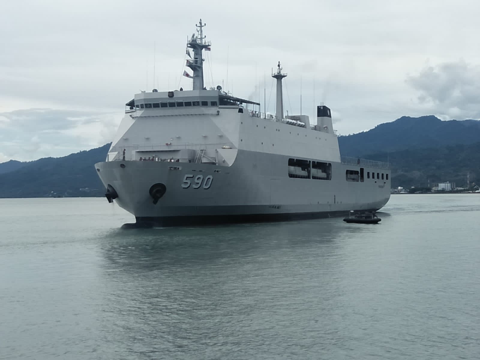 Kapal jenis Landing Platform Dock (LPD) yang membawa bantuan berupa beras, mie instan, gula, air mineral, selimut dan alat-alat kebersihan berupa sabun mandi, sabun cuci, pasta gigi, sikat gigi dan pempers untuk balita ini berangkat dari Surabaya, Sabtu (11/6) lalu.