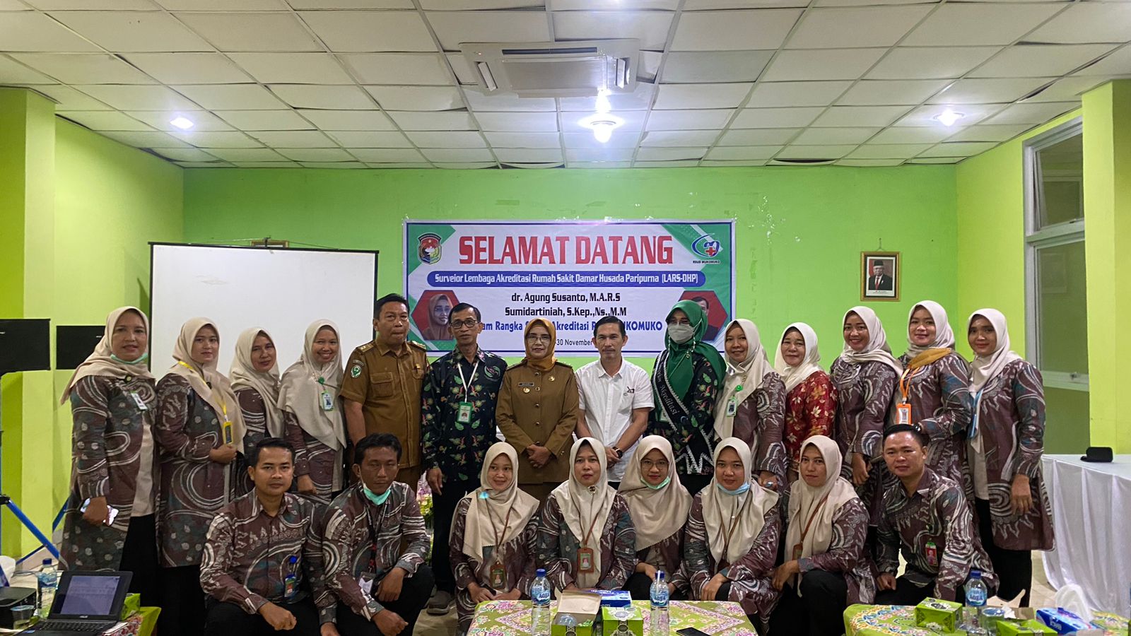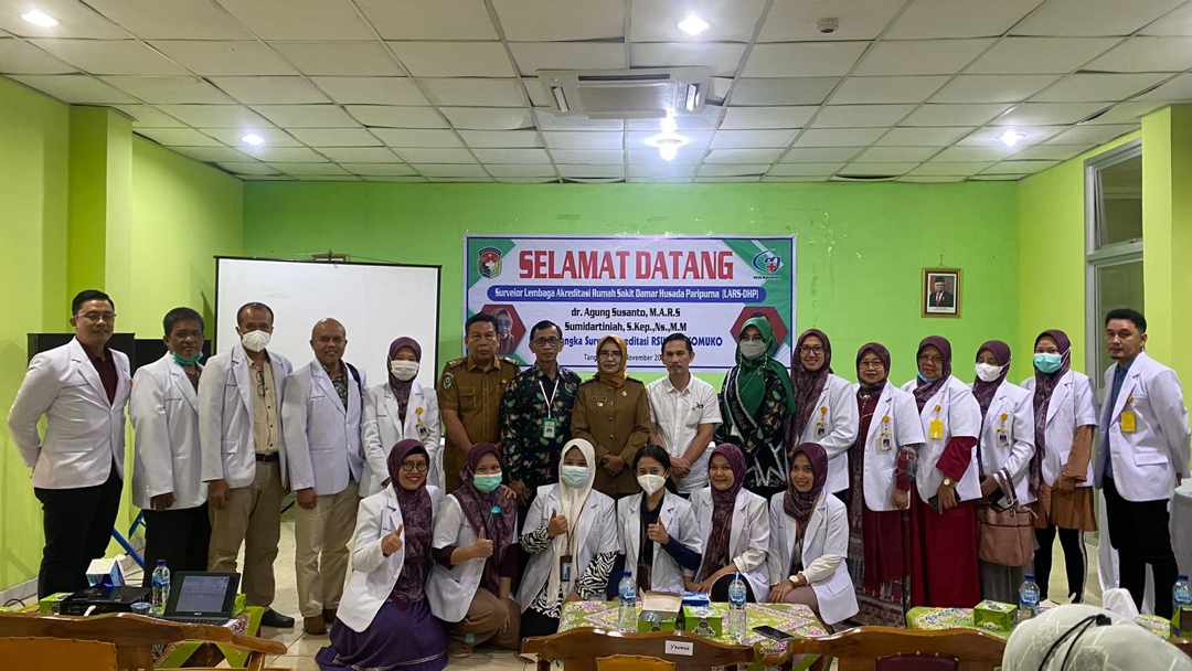 Tim survey dari Surveior Lembaga Akreditasi Rumah Sakit Damar Husada Paripurna (LARS DHP) yang dilaksanakan oleh dr.Agung Susanto M.A.R.S dan Sumidartiniah S.Kep.Ns.MM akan melakukan survey selama 3 hari untuk menentukan apakah RSUD Kebanggaan masyarakat Kabupaten Mukomuko bisa mendapatkan kenaikan Akreditasi.
