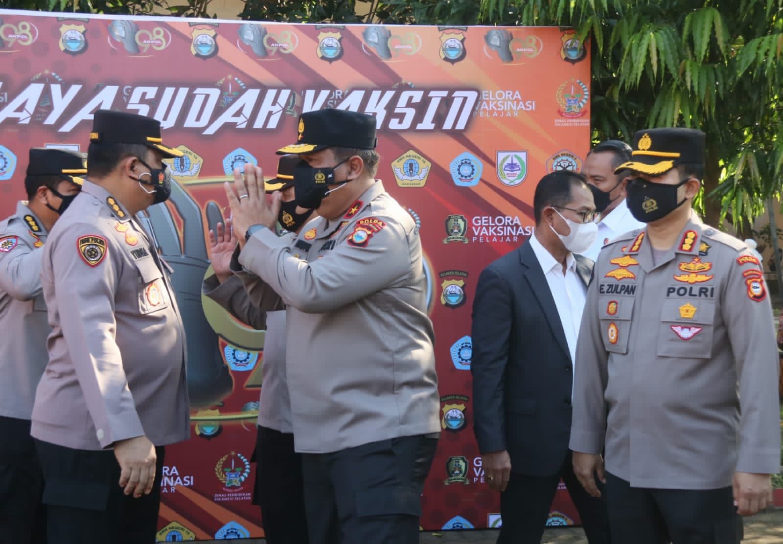 Wakapolda memberikan semangat pada pelajar dan dorongan kepada adik-adik Pelajar supaya mau melaksanakan vaksinasi agar herb community tercapai di Sulsel .