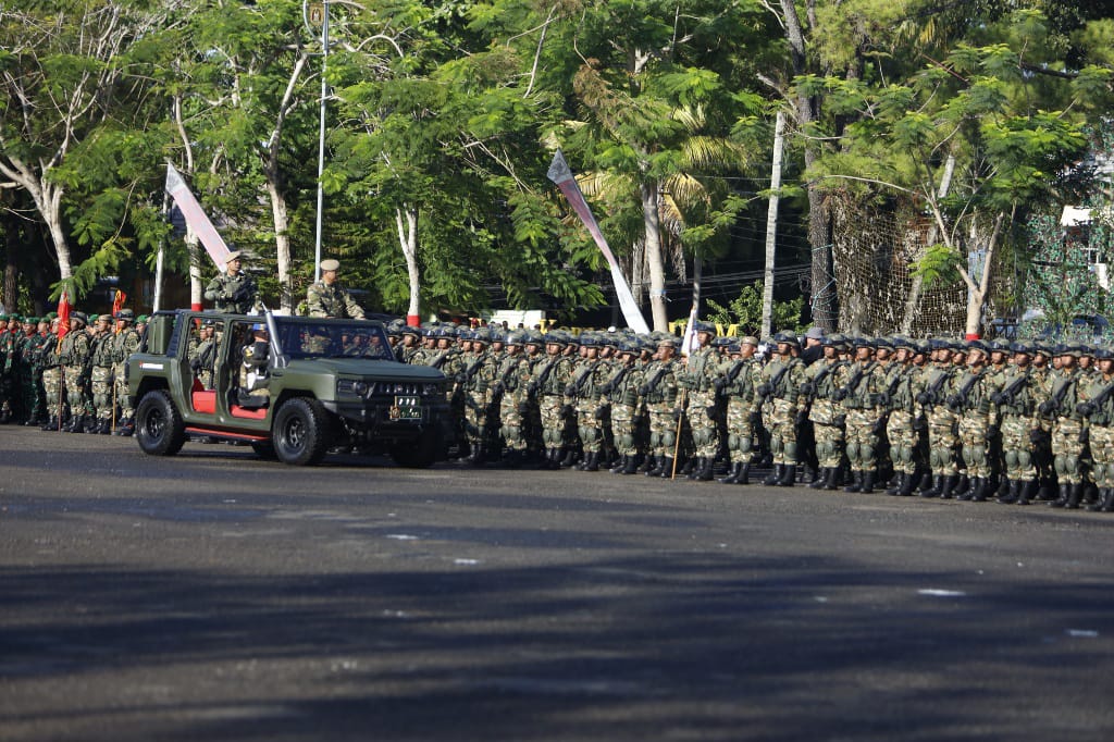 “Dengan mengucap Bismillahirrahmanirrahim, pada hari ini, Rabu tanggal 11 September 2024 pukul 08.15 WITA, Komponen Cadangan Matra Darat sejumlah 500 personel yang dibentuk pada Tahun 2024 secara resmi saya nyatakan ditetapkan,” kata Wakil KSAD saat memimpin upacara.