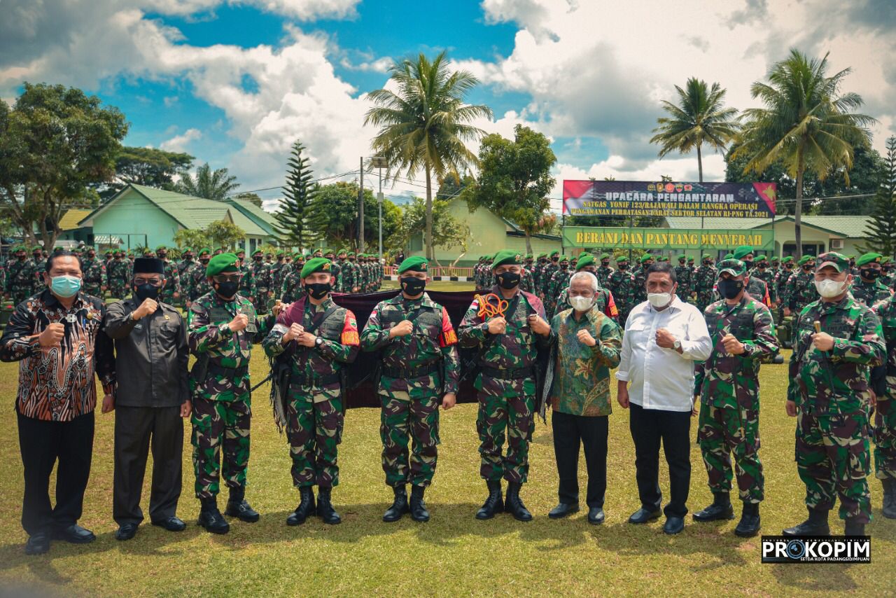 REAKSIMEDIA.COM | Padang Sidimpuan – Walikota Padangsidimpuan Hadiri Kegiatan Pemberangkatan Satgas Yonif 123/RW, Operasi Pengamanan Perbatasan Darat Sektor Selatan RI-PNG Wilayah Papua Jum’at ( 08/10/2021).