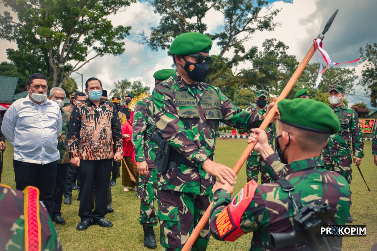 Bertempat di Lapangan Yonif 123/RW, Pangdam I Bukit Barisan Mayjen Hassanudin melepas Prajurit Satgas Yonif 123/RW yang akan beroperasi Pengamanan perbatasan Darat Sektor Selatan RI-PNG Wilayah Papua.