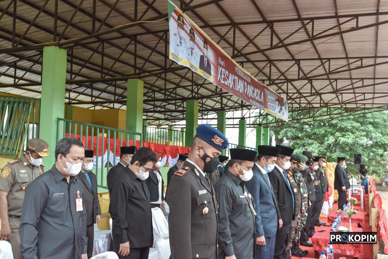 Upacara yang bertemakan “Indonesia Tangguh Berdasarkan Pancasila” di awali dengan mengheningkan cipta untuk memperingati pahlawan-pahlawan yang terbunuh saat peristiwa Gerakan 30 September PKI (G 30 S/PKI) tahun 1965.