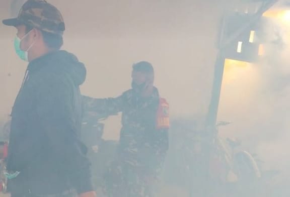 REAKSIMEDIA.COM | Timika – Babinsa Koramil 1710-02/Timika Sertu Mathius Lipan bersama Tim dari Dinas Kesehatan Kab. Mimika melaksanakan fogging guna mematikan perkembang biakan nyamuk Aedes Aegypti, penyebab penyakit Demam Berdarah Dengue (DBD) yang dilaksanakan di Kel. Inauga, Distrik Wania, Kabuapten Mimika, Selasa (21/02/2023).